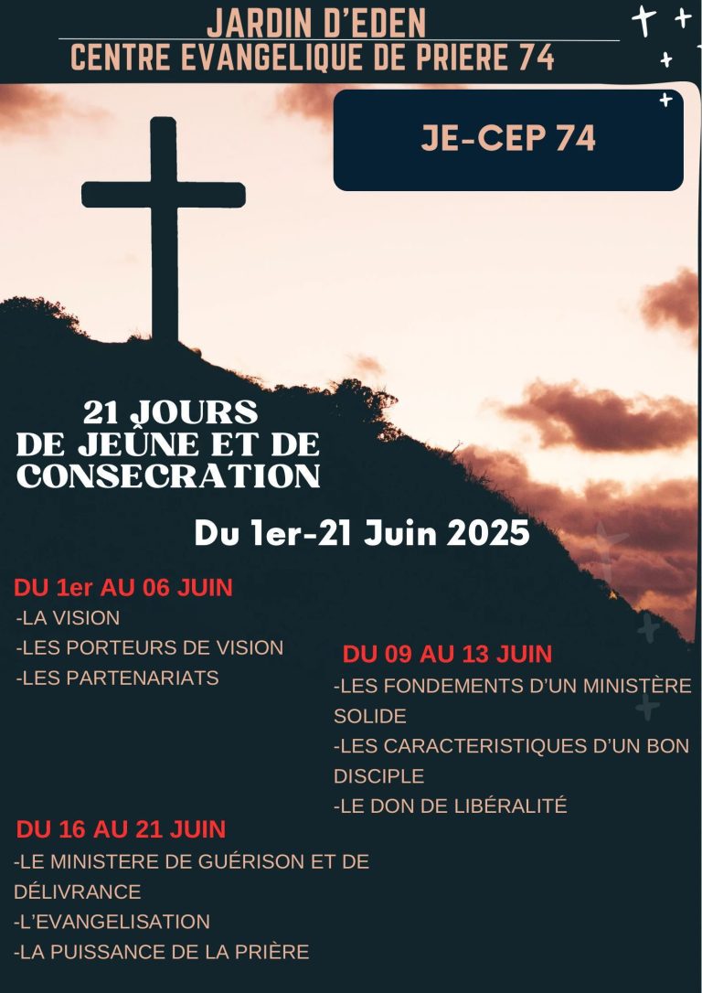 Chaque 6 mois, nous entamons notre temps de jeûne et de consécration afin de renforcer notre alliance avec notre Dieu et conserver la vision.